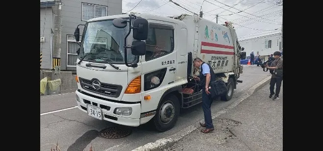 At around 10:40 AM on the 23rd, the police received a report about a crash between a pedestrian and a garbage truck at an intersection in Shintomi-cho, Otaru-shi in Hokkaido.