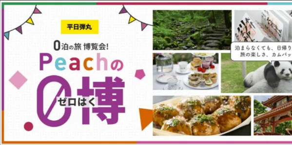 Hãng máy bay quả đào “Peach” đang bán vé các chuyến bay đi về trong ngày, giá đặc biệt “giá vé 0 đêm trọ lại” cho tháng 7 với giá chỉ từ 6600 yên.