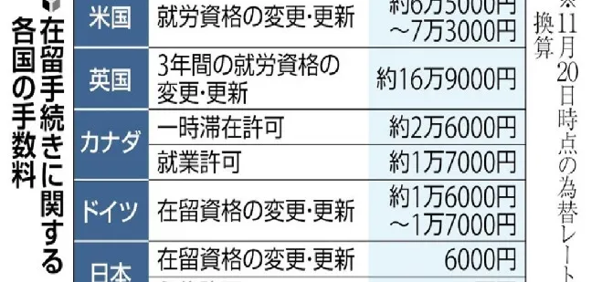 Mức phí cho việc thay đổi hay gia hạn tư cách lưu trú sẽ tăng gấp 5 tới 6 lần lên khoảng từ 30 tới 40,000 yên, trong khi đó visa vĩnh trú dự kiến sẽ tăng gấp 10 lần lên tới hơn 100,000 yên. Quyết định tăng phí cực mạnh lần này được Chính phủ đưa ra dựa theo tiêu chuẩn của các nước phương Tây như Anh, Mỹ, và Đức.